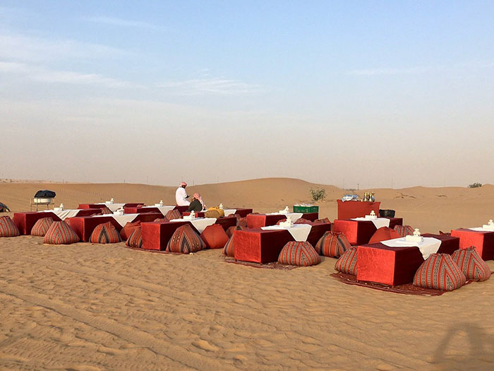 The entry course includes falafel, pasta, and samosa, while Fattoush salad, hummus, tabbouleh, and macaroni are served as appetizers. White rice, noodles, dal, biryani, veg curry, chickpeas, Arabic khubz, and sautéed veggies. Among grills, you will have lamb kebab / grilled chicken & local sweets.